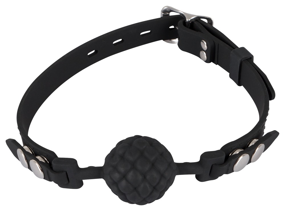 Ten knebel uciszy każdego niewolnika przyjemności. Kula knebelkowa (Ø 3,8 cm) na pasku na głowę, regulowana klamrą.