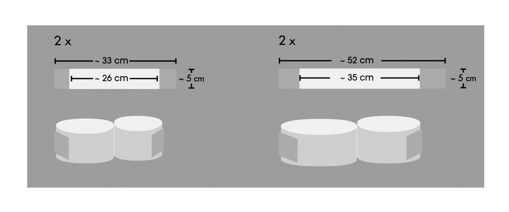 Wszystkie pasy mocujące jako podwójny pas, długość 35-52 cm lub długość 26-33 cm, szerokość 5 cm, czarny, polipropylen.