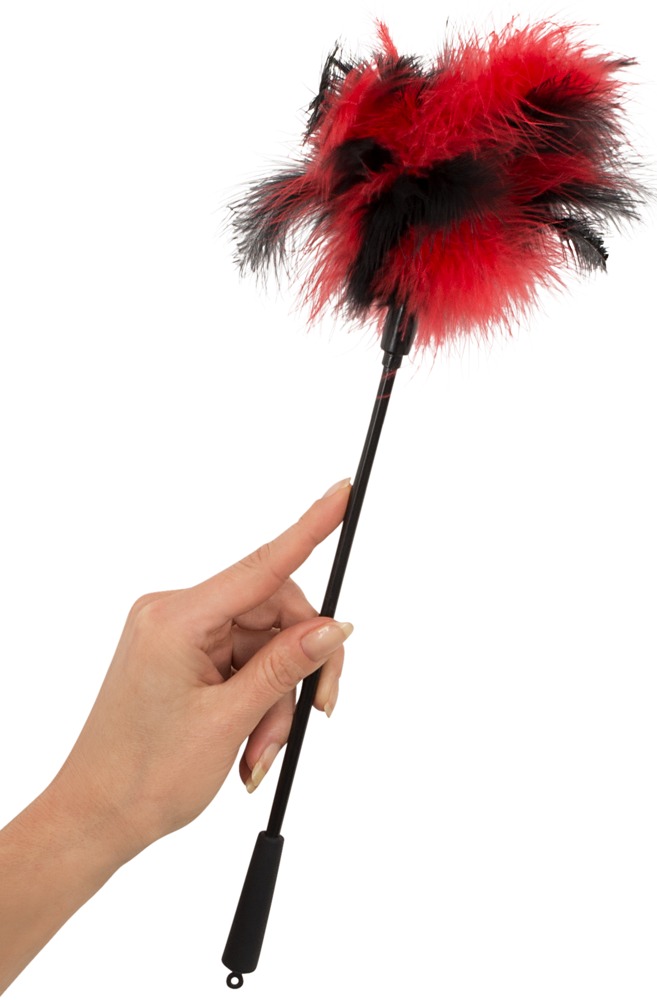 Dzięki tym miękkim kępkom piór na wytrzymałym plastikowym kiju, możesz dać swojemu skarbowi uczucie mrowienia, które sprawi, że będzie się trząsł ... czerwono-czarnym.