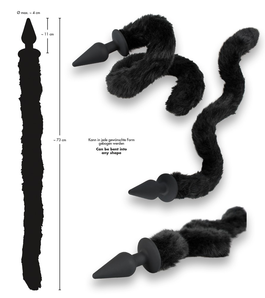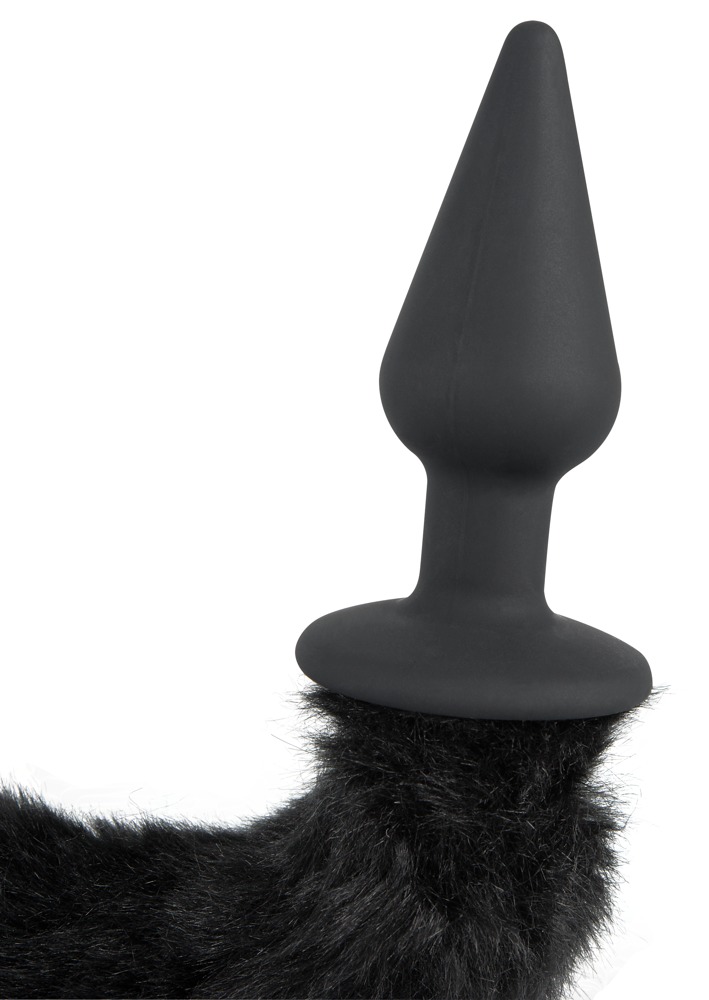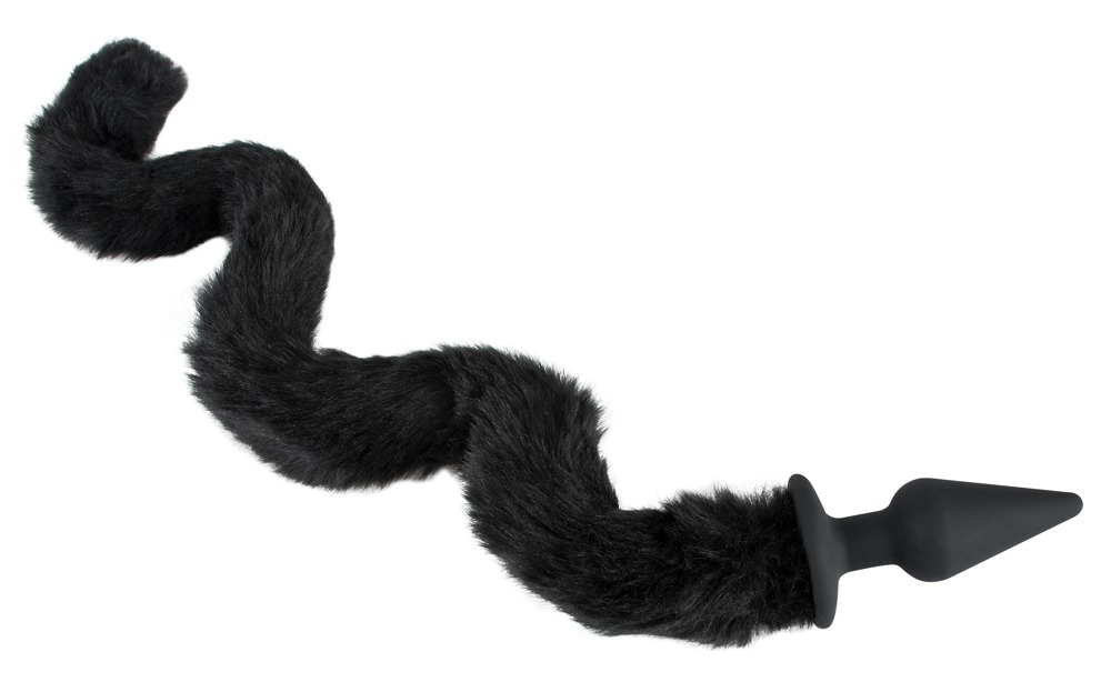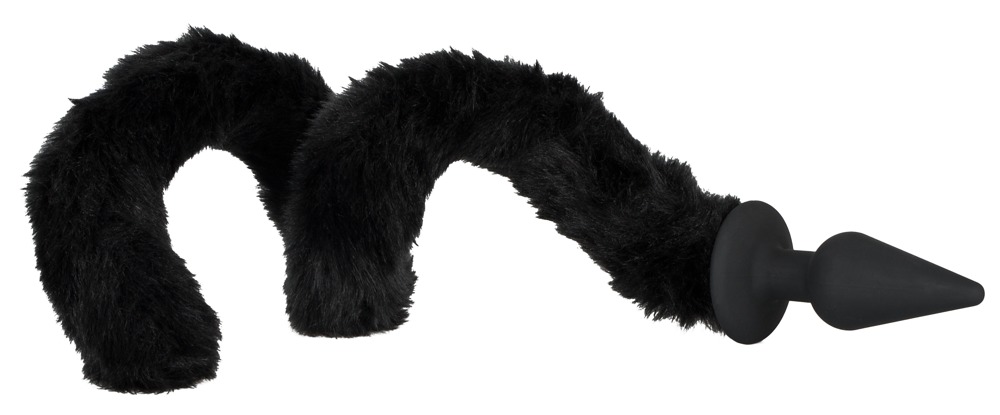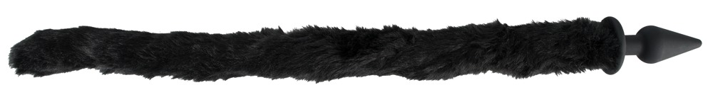 Stożkowaty korek odbytu z małą podstawą, do której przymocowany jest sztuczny ogon futerkowy (ok. 62 cm długości). Czarny.