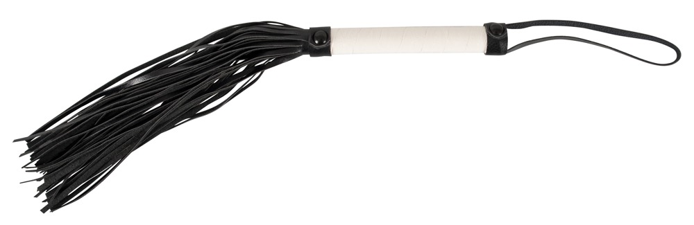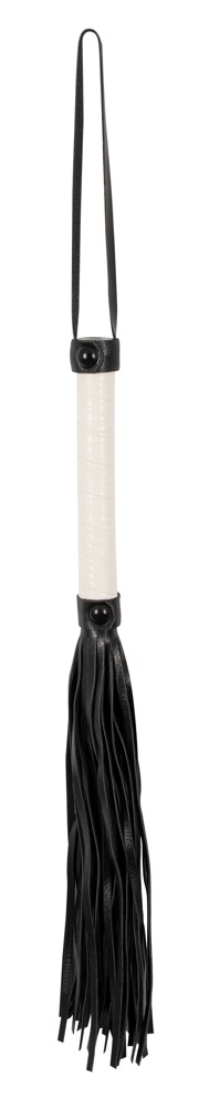 Ten zabawny czarno-biały bicz z szlachetną rączką w diamentowym wyglądzie prowadzi do świata nieodkrytych wcześniej przyjemności. Pozwól, aby paski z imitacji skóry gładko prześlizgiwały się po skórze partnera delikatnymi ruchami lub nadawały kierunek mocniejszymi pociągnięciami.