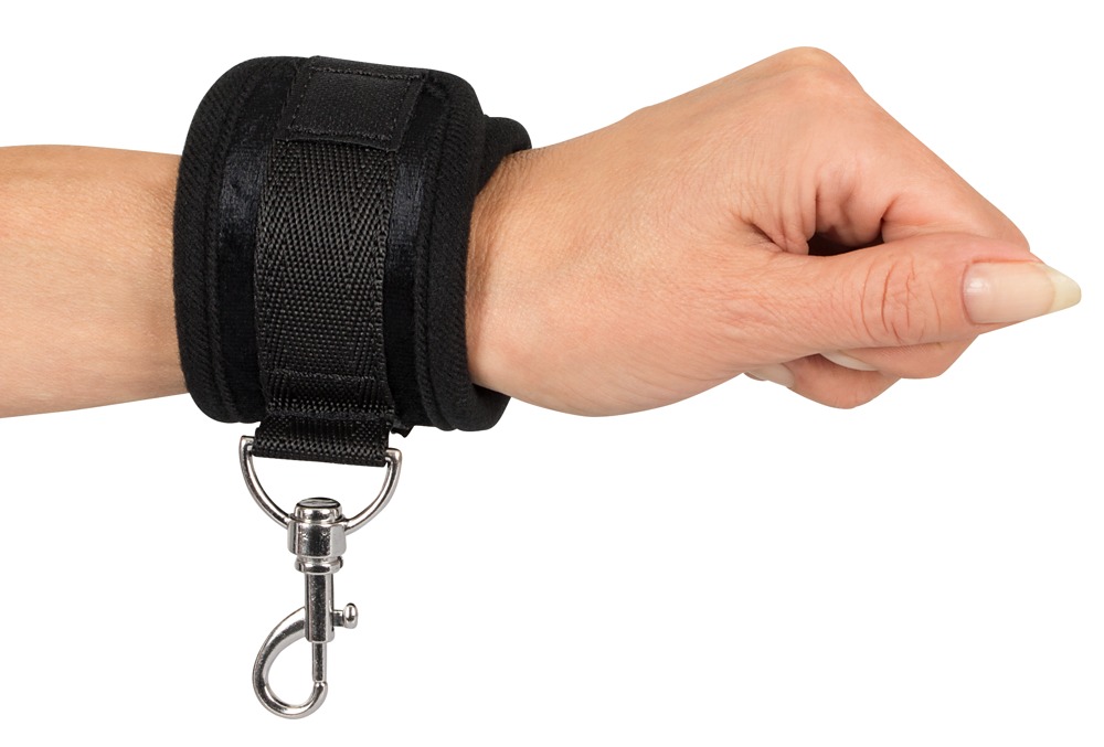 1 para kajdanek z rzepem i karabińczykami, 1 pejcz (40 cm długości całkowitej), 1 sprężynowy kij (30 cm długości całkowitej).