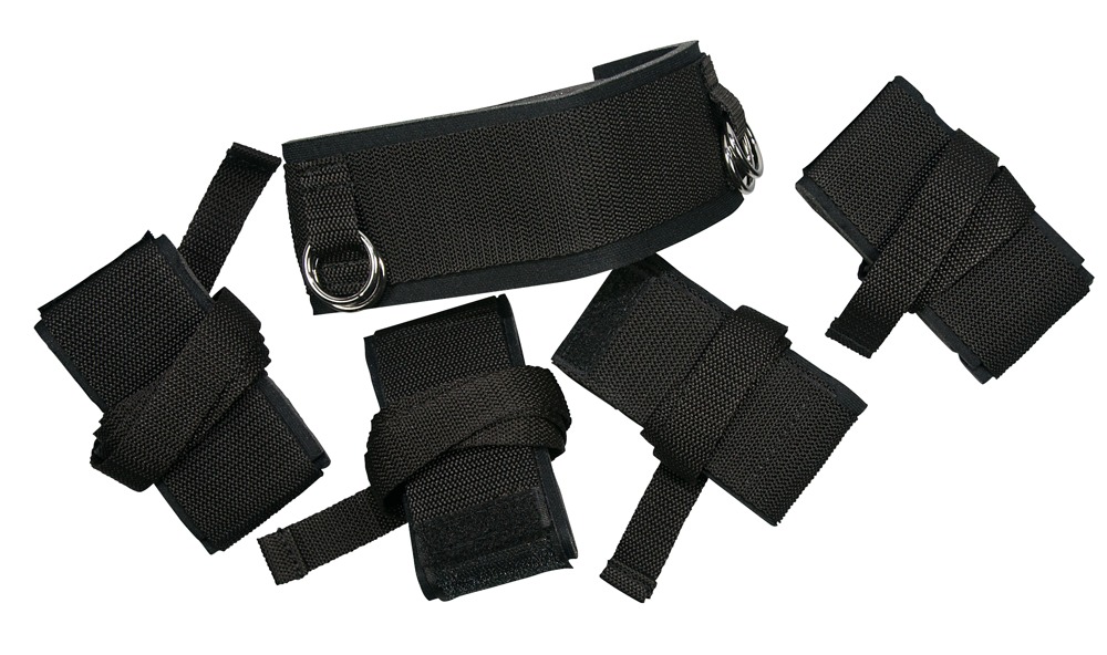 Odporne na rozerwanie wąskie paski łączą wyściełane mankiety rąk i stóp z mankietem na szyi. Taśmy (132 cm) mają regulację długości, dzięki czemu możliwe jest ustawienie niemalże w pozycji pionowej lub osoba związana musi trzymać się zgiętej. Ramiona mogą być również mocowane (pojedynczo) w poszczególnych pozycjach. Wszystkie mankiety z zapięciem na rzep.