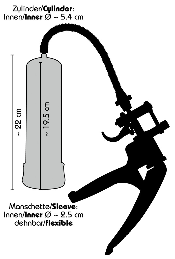Długość całkowita 22 cm, głębokość wsunięcia 19,5 cm, otwór tulei Ø 2,5 cm. PVC, ABS, TPE.