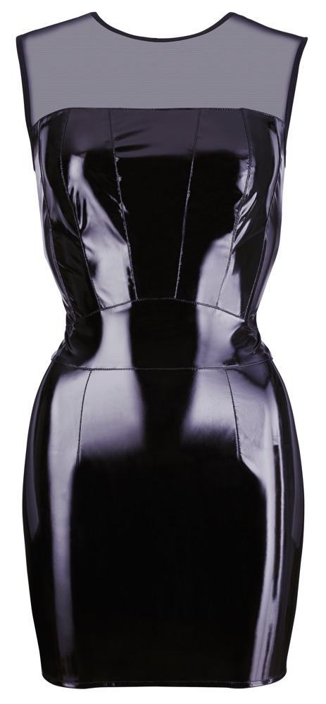SEKSOWNA WINYLOWA SUKIENKA Z PRZEŚWITUJĄCYM DEKOLTEM