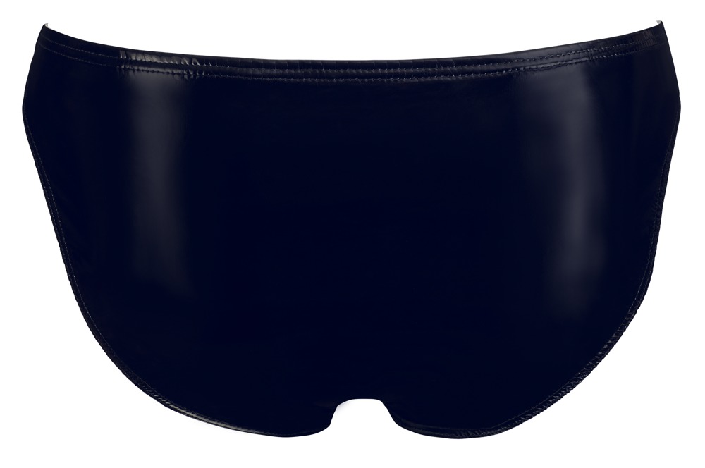 Klasyczne czarne majtki wykonane z podłużnego i poprzecznego elastycznego 4-karatowego lakieru sznurowanego z dolnym suwakiem z metalu w kolorze srebrnym.