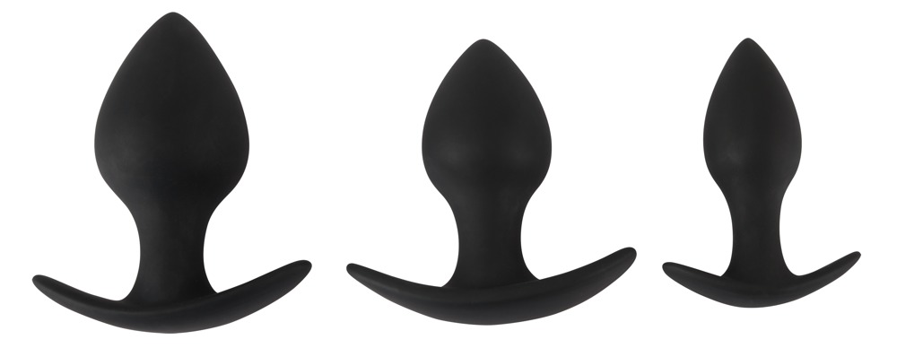 3-częściowy zestaw wtyków analnych o przyjemnie miękkiej fakturze. Różne rozmiary są idealne do stopniowego treningu analnego. Dzięki swojemu stożkowatemu kształtowi wtyki są szczególnie łatwe do włożenia i zapewniają przyjemne uczucie pełności. Z bardzo szeroką podstawą zapewniającą pewne trzymanie i łatwą obsługę.