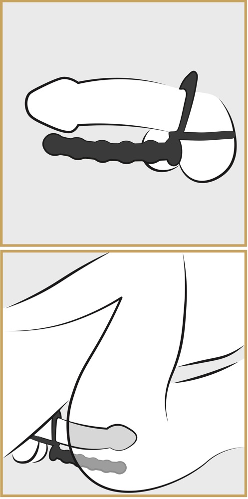 Pierścień penisa/jądra z analnym dildo. Po prostu wsuń dwa odpowiednie pierścienie na penisa i jądra - i będziesz wyposażony w drugi elastyczny, łatwy do przesuwania członek, aby Twój partner był dwa razy bardziej zadowolony! Pierścień penisa z koniuszkami łechtaczki. Wszystko z miękką powierzchnią do łatwego przesuwania.