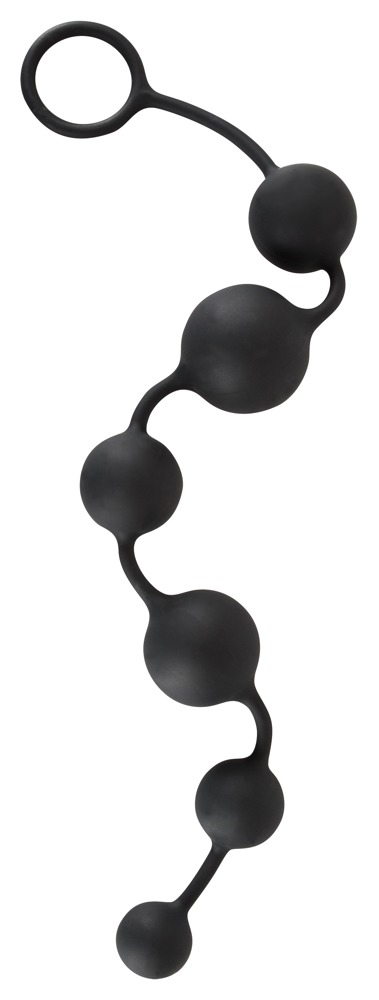 Czarny łańcuch kulkowy z sześcioma kulkami o różnej średnicy (2,3-3,9 cm). Łatwo się rozciągnąć. Z pierścieniem zwrotnym. Długość całkowita ok. 40 cm. Materiał: silikon.