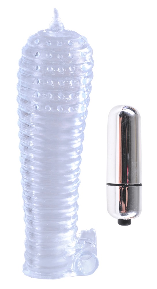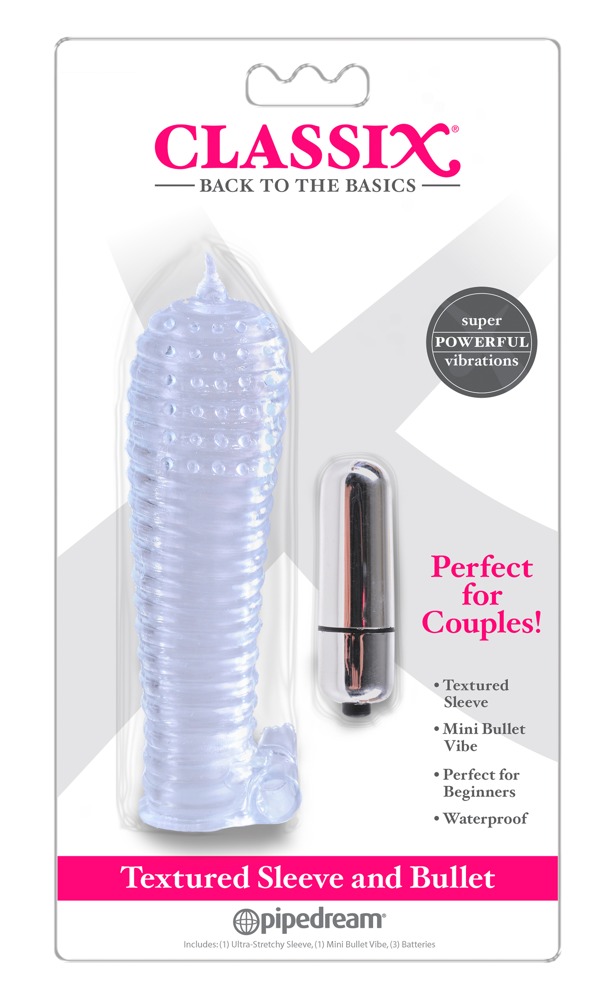 Zmysłowa tuleja z wypustkami i rowkami dla większej wytrzymałości i ultra intensywnych chwil dla dwojga. Zintegrowany wibrobullet jest wodoodporny i pieści zarówno łechtaczkę jak i jądra. Można go wyjąć z rękawa na penisa dla dalszych zabaw. Baterie w zestawie: 3 x LR44.