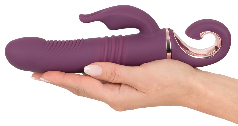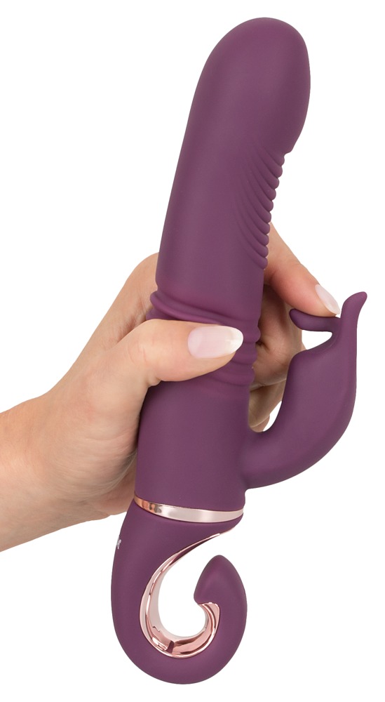 Wibrator wstrząsowy z elastycznym stymulatorem łechtaczki dla orgazmu-skuteczne wszechstronne rozpieszczanie: Jego pulchna główka wibrująca uderza specjalnie w jej punkt G, podczas gdy w tym samym czasie pochwa jest intensywnie masowana, a łechtaczka jest stymulowana podczas wibracji. 10 trybów wibracji i 8 trybów pchnięć zapewnia dużą różnorodność i może być wygodnie kontrolowane oddzielnie za pomocą jednego przycisku na praktycznym pierścieniu trzymającym/kontrolnym. Nawet w wannie lub pod prysznicem, ponieważ ten wyrafinowany wibrator jest wodoodporny! Wykonany z pieszczotliwie miękkiego silikonu o miękkiej w dotyku fakturze, zapewnia bardzo przyjemne doznania skórne podczas rozpieszczania. Możliwość ładowania - w zestawie kabel USB do ładowania.