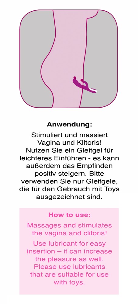 Ekstrawagancki kochanek z niezwykłymi funkcjami. Fioletowy wibrator z ramieniem do stymulacji łechtaczki posiada dwa silniki, które umożliwiają nie tylko stymulację pochwy, ale również łechtaczki. Jeden silnik znajduje się w wale, drugi w ramieniu stymulacji łechtaczki, oba mają 5 trybów wibracji, sterowanych oddzielnie za naciśnięciem przycisku. Szczególną atrakcją jest jednak funkcja ogrzewania końcówki wału: po włączeniu wibratora końcówka nagrzewa się do przyjemnej temperatury 42 °C. Możliwość ładowania za pomocą dołączonego kabla ładującego USB. Długość całkowita 22 cm, głębokość wsunięcia 11,5 cm, Ø 2,6-3,5 cm. Materiał: ABS, silikon z powłoką PU.