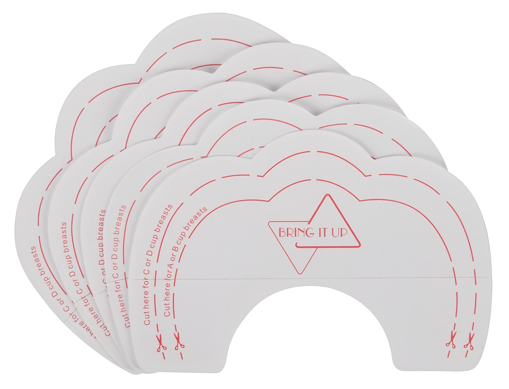 Przezroczyste kleje do biustonoszy zapewniające doskonały efekt push-up bez biustonosza. Idealny do sukienek bez pleców i niskich dekoltów. Po prostu przymocuj mały odcinek taśmy na sutku. Następnie przyklej górną część naklejki na żądanej wysokości. Gotowy jest dekolt NoBra! Po użyciu, taśma jest usuwana ponownie. Z przyjaznym dla skóry klejem silikonowym i może być przycięty na wymiar. Może być użyty tylko raz.