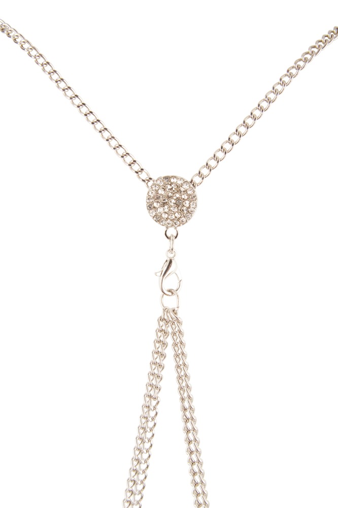 Ta delikatna uprząż łańcuchowa nie tylko wygląda cholernie dobrze, ale jest również bardzo ekscytująca do noszenia - czy to na gołej skórze, czy też na koszuli i koszuli. Srebrny łańcuszek biżuterii body z okrągłymi zapięciami z przodu i z tyłu. Dodatkowo z małym zapięciem homarowym z tyłu.
