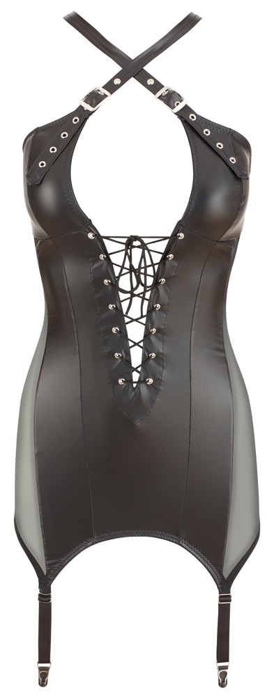 Pokaż się swojej ukochanej w tej obcisłej sukience do pończoch, która przekonuje swoim czarnym, matowym wyglądem i wstawkami Powernet po bokach! Z przodu z sznurowaniem na niskim dekolcie.
