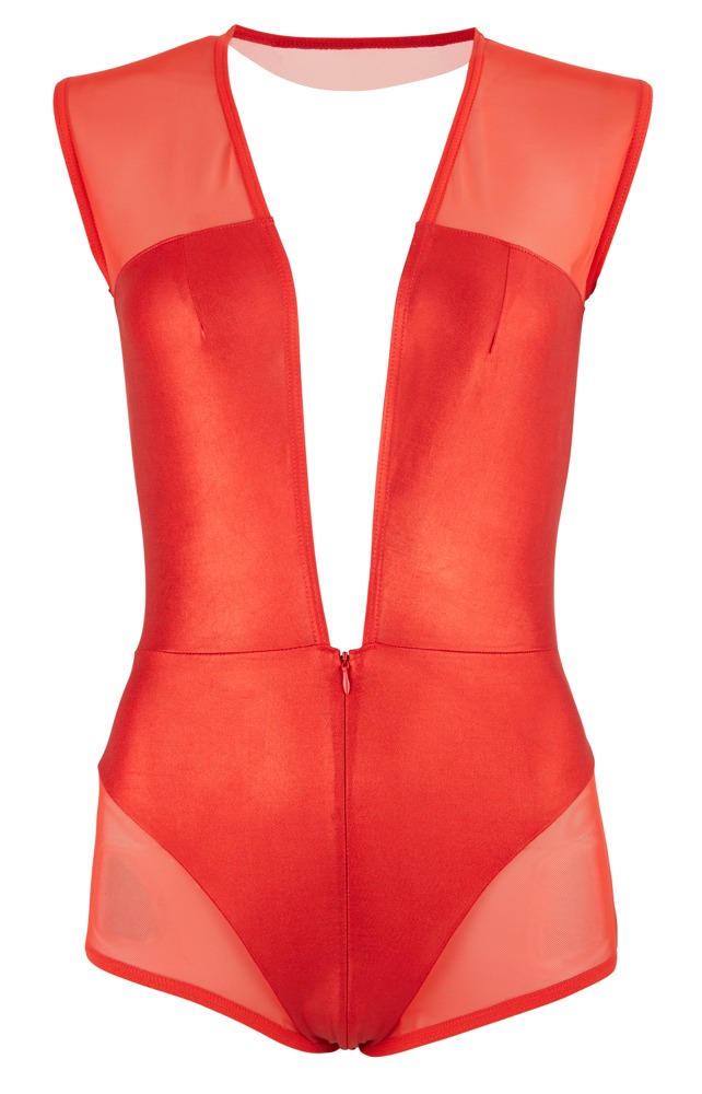 Czerwone body wycięte do pępka w ekscytującej mieszance siatki i mokrego spojrzenia, które wyeksponuje dekolt jak żadne inne! Elastyczny materiał przylega do kobiecych krągłości jak druga skóra i pozwala Ci wyglądać zapierająco głęboko. Niezwykle praktyczny okazuje się dyskretny zamek błyskawiczny z przodu, który prowadzi przez całe krocze aż do pośladków i umożliwia tym samym spontaniczne gry miłosne bez uciążliwego rozbierania się. Wszystko w tym uwodzicielskim body jest w sam raz!