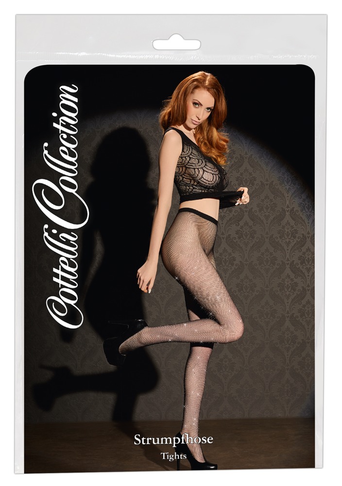 COTTELLI LEGWEAR - CZARNE RAJSTOPY SIATKOWE Z OZDOBNYMI KAMIENIAMI