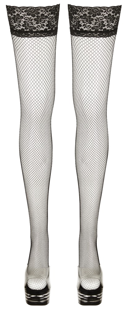 Pończochy damskie wykonane z delikatnego siateczkowego materiału, z koronkową górą o szerokości 10 cm. Silikonowe opaski po wewnętrznej stronie zapewniają antypoślizgowe dopasowanie. Absolutny must-have dla pięknych nóg, które można łączyć na wiele sposobów.