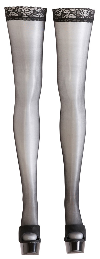 Pończochy podtrzymujące z ozdobnym szwem i wysokim obcasem. Szlachetny koronkowy top sprawia, że seksowny wygląd jest idealny. Z silikonową opaską wewnątrz dla antypoślizgowego dopasowania. 20den Oekotex certyfikowany.