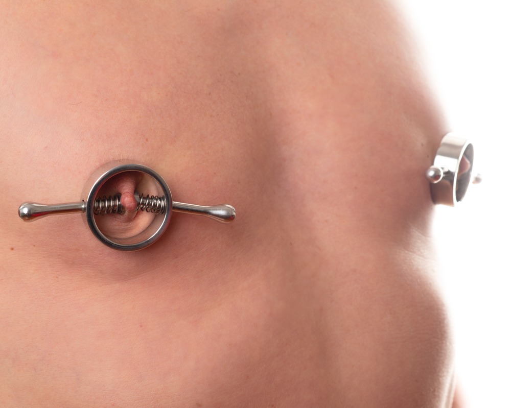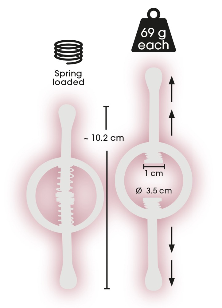 Zaciski sutkowe, które są mocowane do sutków za pomocą sprężyn. Łatwe do nakręcenia i eleganckie do noszenia. Dzięki zawieszeniu dopasowują się do sutków.