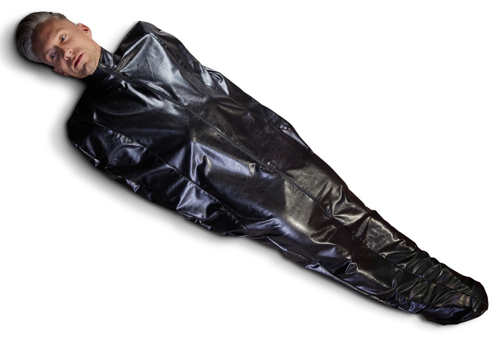 Ten czarny śpiwór nie pozostawia nic do życzenia ze swoim szlachetnym wyglądem. Jego elastyczna imitacja skóry pozostawia wiele miejsca na dziwaczne fantazje fetyszowe. Śpiwór bez podszewki wyposażony jest w bardzo długi zamek błyskawiczny i torbę na nogi. Otwory ramienia są całkowicie zamknięte.