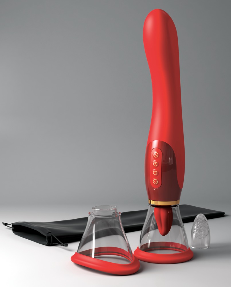 Ten wibrator 3 w 1 spełnia każde życzenie: lekko zakrzywiony wał z łatwością dociera do strefy G i stymuluje za pomocą 10 trybów wibracji. Druga strona zabawki 3 w 1 jest wyposażona w stymulator łechtaczki w 7 trybach ruchu i miskę ssącą, z 3 wzorcami ssania, które tworzą podciśnienie za naciśnięciem przycisku. Posiada on funkcję zwalniania podciśnienia i tym samym gwarantuje bezpieczną zabawę. Przyssawkę można zdemontować i sterować wszystkimi funkcjami oddzielnie. Wodoodporny dla bezpiecznej zabawy w wannie i pod prysznicem. Zawiera kabel do ładowania USB i torbę podróżną.