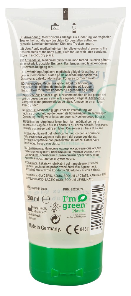 Just Glide Bio to naturalny lubrykant organiczny na bazie wody - ekologicznie poprawny w tubie "Green-PE" z odnawialnego surowca - trzciny cukrowej, która podczas wzrostu wiąże CO2 w sposób przyjazny dla klimatu. Bezsmakowa i bezzapachowa formuła jest wegańska i bezpieczna dla prezerwatyw lateksowych. Ponadto nie zawiera oleju i smaru, dzięki czemu smar można zmyć bez śladu.