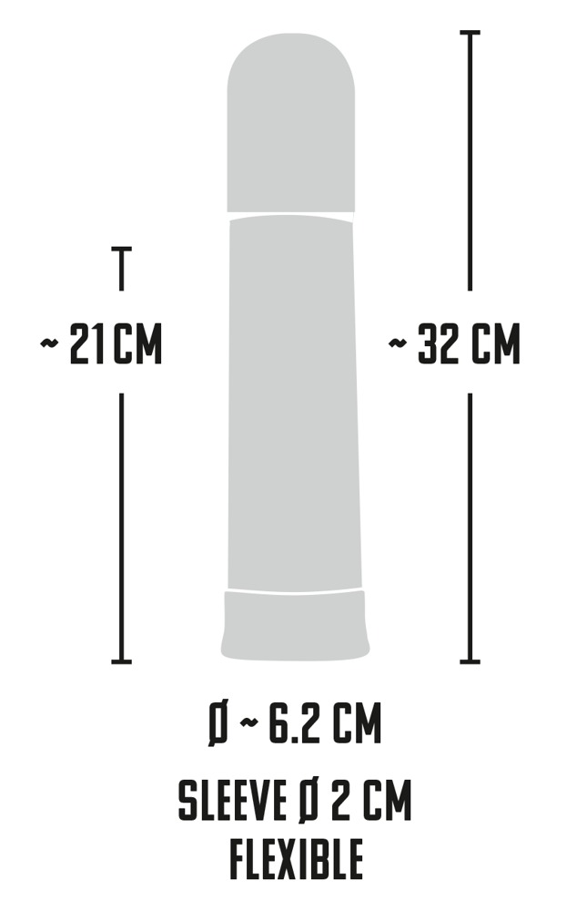 Długość 32 cm, głębokość wsunięcia 20 cm, Ø tuleja 2 cm (rozciągliwa). ABS, TPE, poliwęglany.