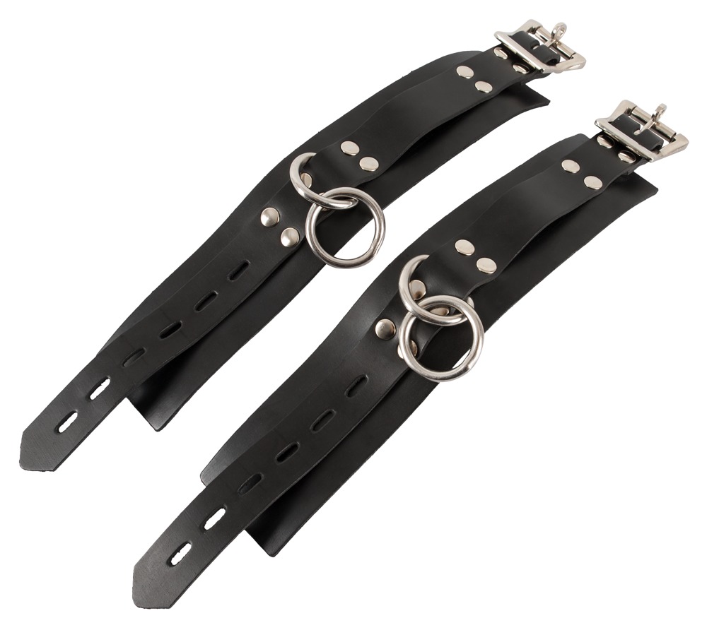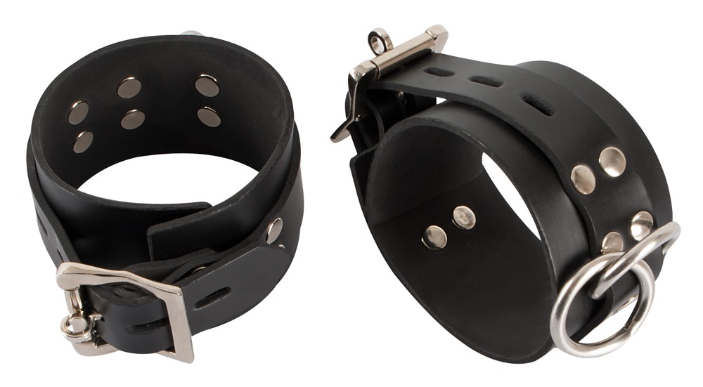 Klasyczne czarne kajdanki z gumowego napalonego lateksu. Z klamrami regulowanymi dla niego i dla niej. Solidna jakość! Lateks, wykonany z naturalnego lateksu gumowego, który może powodować alergie.