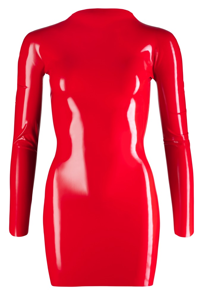 Czerwona sukienka z długimi rękawami ma zamek błyskawiczny, który można nosić zarówno z przodu, jak i z tyłu. Dipped na płaskiej formie.