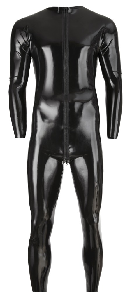 Obcisły kombinezon z nogawkami i 3-kierunkowym zamkiem błyskawicznym nad tyłkiem. Absolutna perełka do każdej fetyszowej szafy.