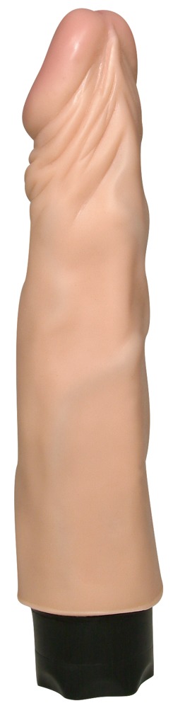 Wybrzuszenia żołędzi i wyraźne żyłki, jak również jego silna elastyczność uczynić ten wibrator przyjemność uczucie, które można cieszyć się we wszystkich sytuacjach miłosnych. Miękki materiał gumowy sprawia wrażenie zwodniczo realnego i dopełnia wrażenie "prawdziwego". Odporne na zachlapanie. Kolor skóry, 22 cm długości, Ø 4 cm do 4,5 cm. Materiał: PVC. (Prosimy zamawiać osobno baterie: 2 x Mignon).