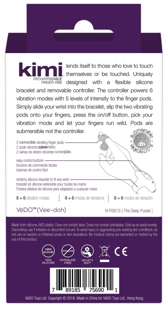 VEDO KIMI - NOWOCZESNY WIBRATOR NA PALEC 2 NAKŁADKI NA PALEC FIOLETOWY