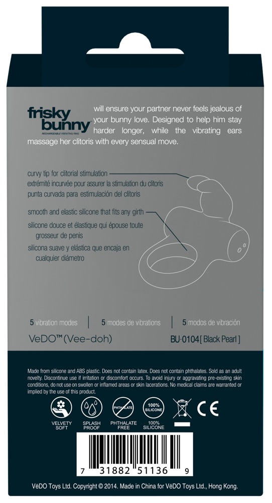 Jedwabiście delikatny pierścień wibro penisa z króliczym stymulatorem łechtaczki. Zepsuty z 5 trybami wibracji. Z praktycznym zamkiem podróżniczym. Możliwość ładowania za pomocą dołączonego do zestawu kabla ładującego USB.