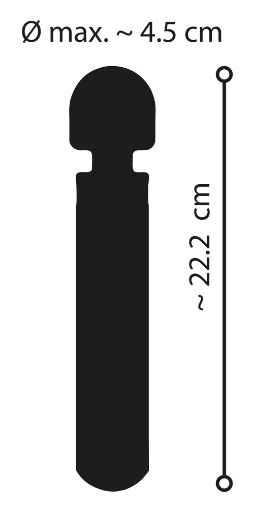 Długość całkowita 22,2 cm, Ø głowicy masującej 4,5 cm, 172 g. Silikon, PU, ABS.