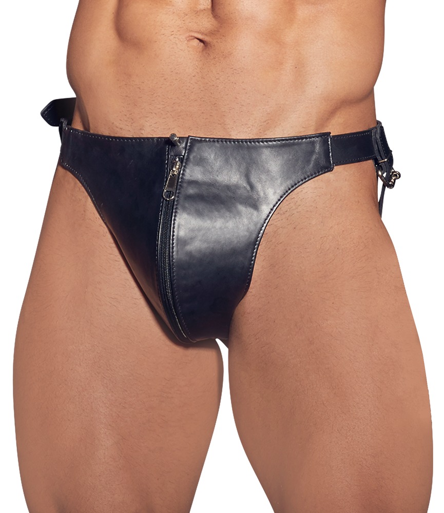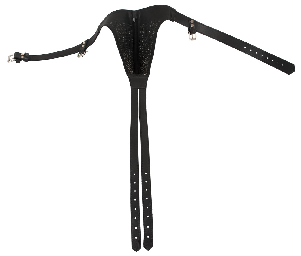 Ten szlachetny skórzany jock thong kryje w sobie przepysznie bolesny sekret: worek na penisa jest wewnątrz nabijany kolcami, które cudownie nieprzyjemnie wrzynają się w ciało. Stringi te są więc idealne do cnoty lub do wprowadzenia porządku w codziennym życiu, ponieważ regulowane klamerki po bokach mogą być przymocowane za pomocą małych zamków (nie są dołączone). Zamek błyskawiczny pozwala na ekscytujące doznania z materiału podczas sesji lub może być po prostu otwarty jako nagroda.