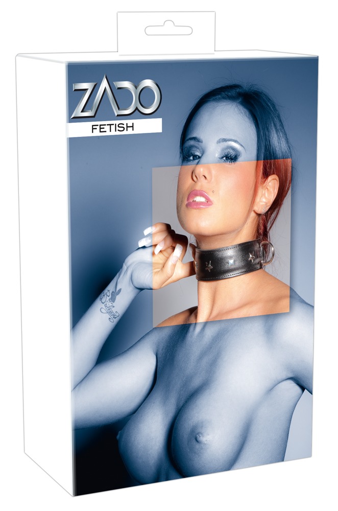 Krępowanie szyi, w całości wykonane z wysokiej jakości, wytrzymałej skóry gładkiej z szytymi krawędziami i ozdobnymi pierścieniami. Dwa boczne D-ringi zapraszają na smycz i karę. Możliwość regulacji rozmiaru.