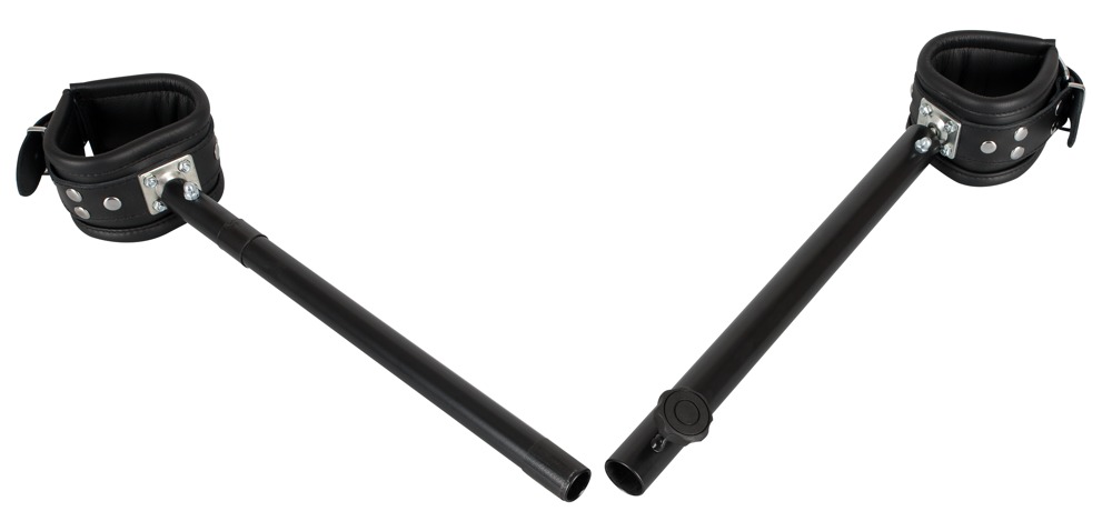 Mocno osadzone, miękkie, wyściełane skórzane żelazka na nogi z zapięciem na regulowany metalowy pręt - rozciągane od 35 cm do 60 cm. Skóra (nappa i dwoina), metal.