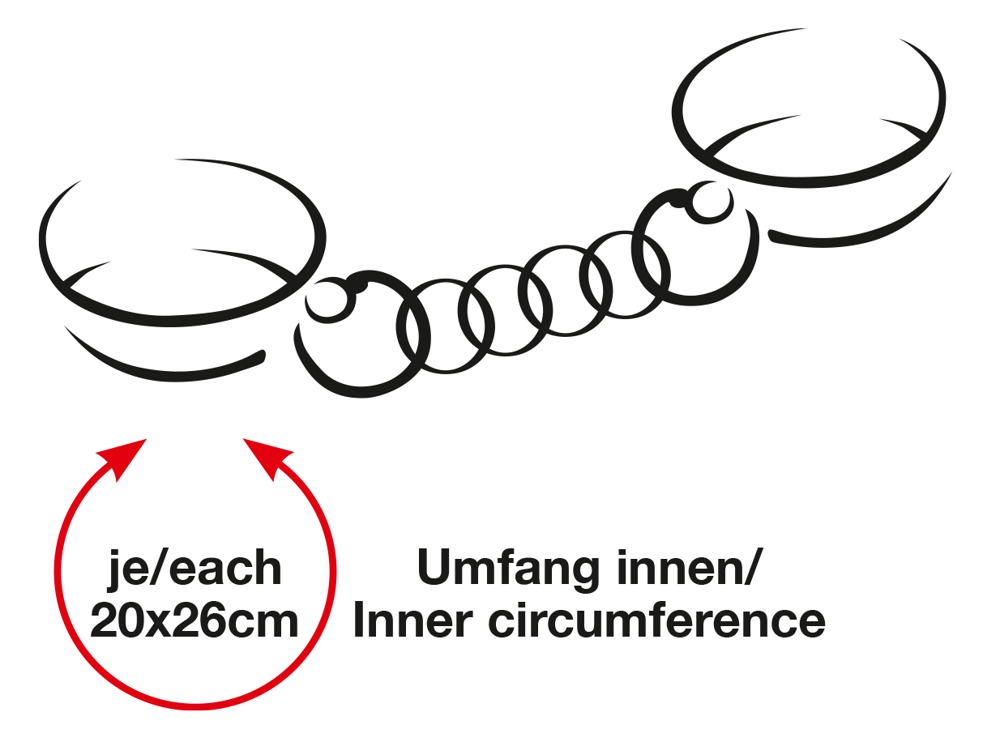 Miękkie, wyściełane mankiety na nadgarstki o szerokości 6,5 cm z karabińczykiem łączącym. Możliwość regulacji.