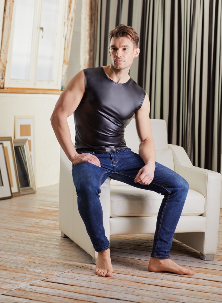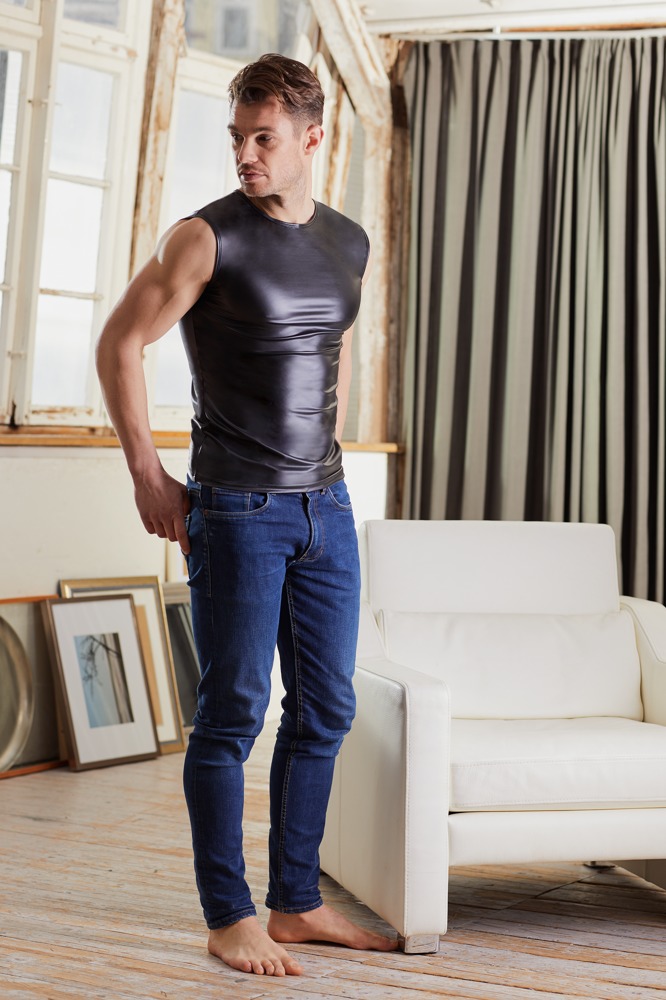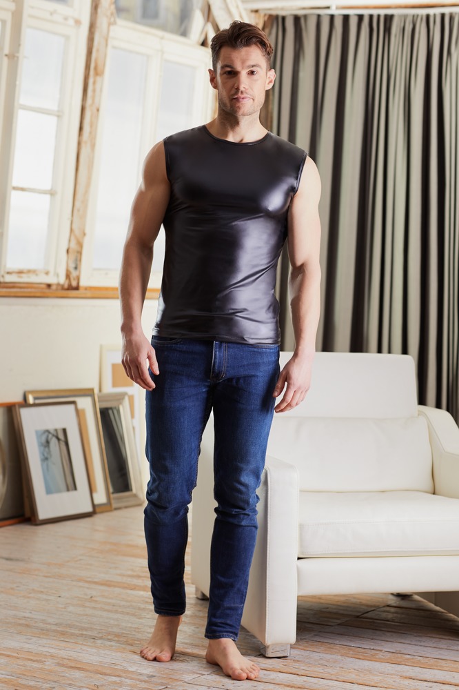 Ten czarny top przekonuje swoim klasycznym kształtem, który podkreśla ciało poprzez szlachetny matowy wygląd - po prostu prawdziwy talent kombinacji z wąskim dekoltem i otworami na ramiona, którego nie powinno zabraknąć w żadnej szafie.