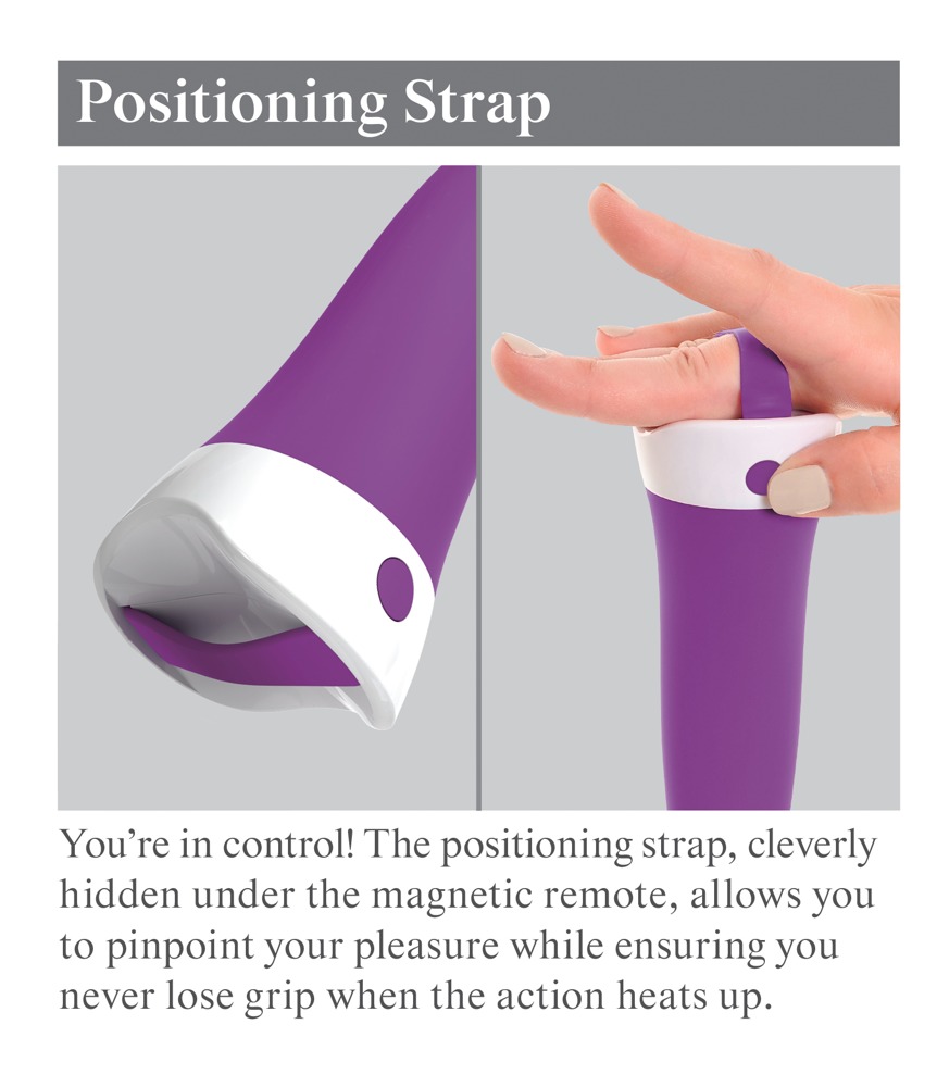 Ten specjalny wibrator przekonuje wszechstronnym zastosowaniem i ergonomicznie wygiętym trzonem. Podstawa ssąca jest zdejmowana i ma elegancki wygląd, co pozwala na zabawę solo bez użycia rąk. Po zdjęciu podstawy ssącej można wyjąć pilot zdalnego sterowania, aby kontrolować 10 trybów wibracji zdalnie, a nie tylko w podstawie. Pilot jest magnetycznie przymocowany do podstawy, więc nie można go zgubić. Dla zabawy w pojedynkę lub w parze, uchwyt jest również ekscytujący, gwarantując pewne trzymanie. Delikatny silikon wsuwa się jak gdyby sam, a ergonomiczny trzonek łapie strefę G dla punktowej stymulacji. W zestawie kabel USB do ładowania i bateria do pilota: 1 x CR1620.