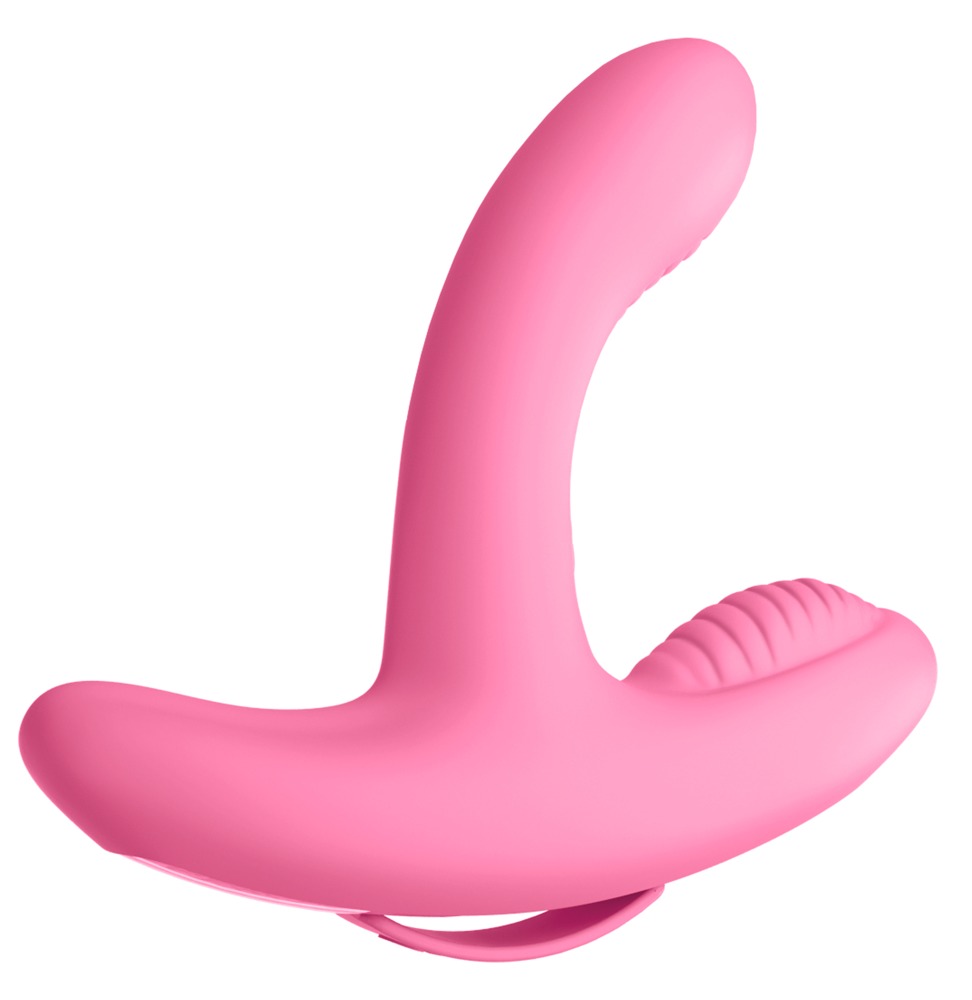 Ten wibrator jest idealny do podwójnej stymulacji - pieszczotliwie miękki silikon wibratora wślizguje się jak za dotknięciem czarodziejskiej różdżki, podczas gdy skrzydełko delikatnie gra na łechtaczce. Dwa silniki stymulują w 10 ekscytujących trybach wibracji. Pasek zapewnia bezpieczny uchwyt, aby przesunąć końcówkę G-zone tam i z powrotem na punkcie G dla ekscytujących fajerwerków pochwy. Odporny na zachlapanie. W zestawie kabel USB do ładowania i bateria do pilota: 1 x CR1620.