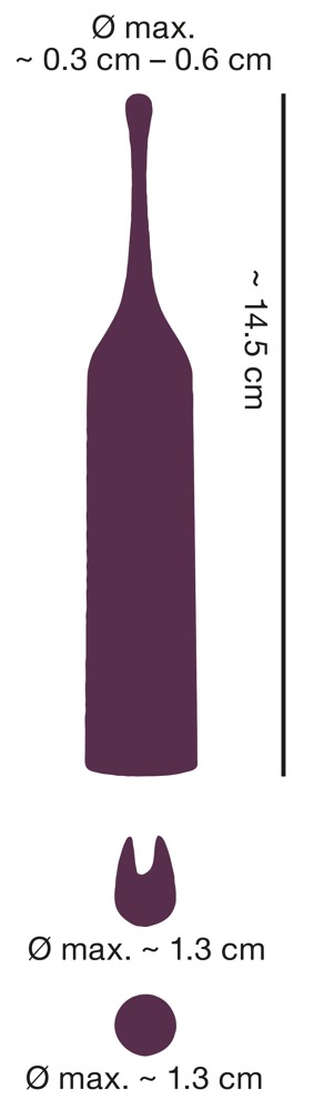 Długość całkowita 14,5 cm, Ø bez mocowania 0,6 cm, Ø mocowania max.1,3 cm. ABS, silikon, PU.