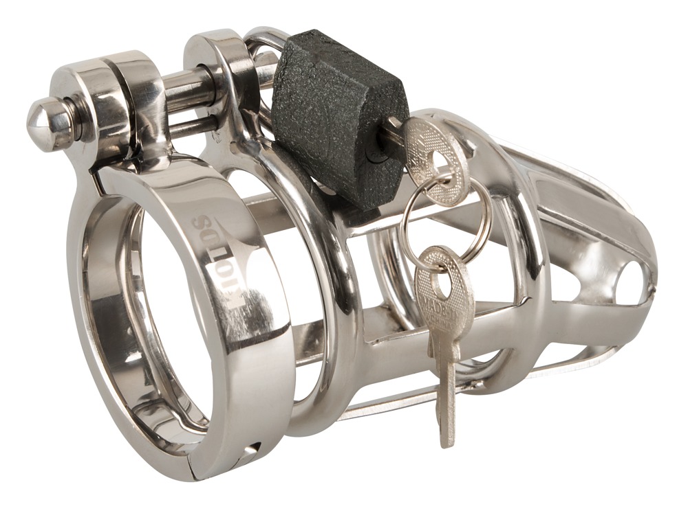 Ta klatka na penisa czyni czystą postawę niewolnika prawdziwym marzeniem! On zawsze siedzi bezpiecznie, ponieważ 3 pierścienie w różnych rozmiarach są dołączone, aby zapewnić idealne dopasowanie do każdego penisa. Bardzo ważny jest również zamknięty zamek, który zawsze można zamknąć dwoma kluczami.