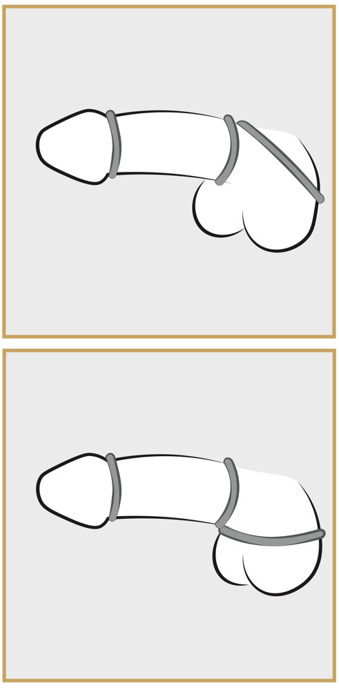 Trzy różne rozmiary pierścieni penisa/jądra w zestawie. W niebezpiecznym wyglądzie metalu z komfortem i bezpieczeństwem silikonu. Bardzo elastycznie kładą się wokół penisa i jąder i zapewniają erekcji kamiennej i że szczególnie długo.