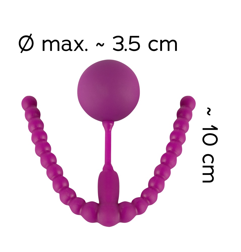Długość całkowita 19,4 cm, Ø kuli 3,5 cm, waga 46 g. Silikon, PU.