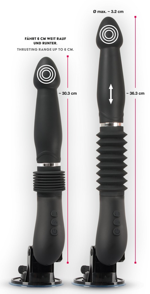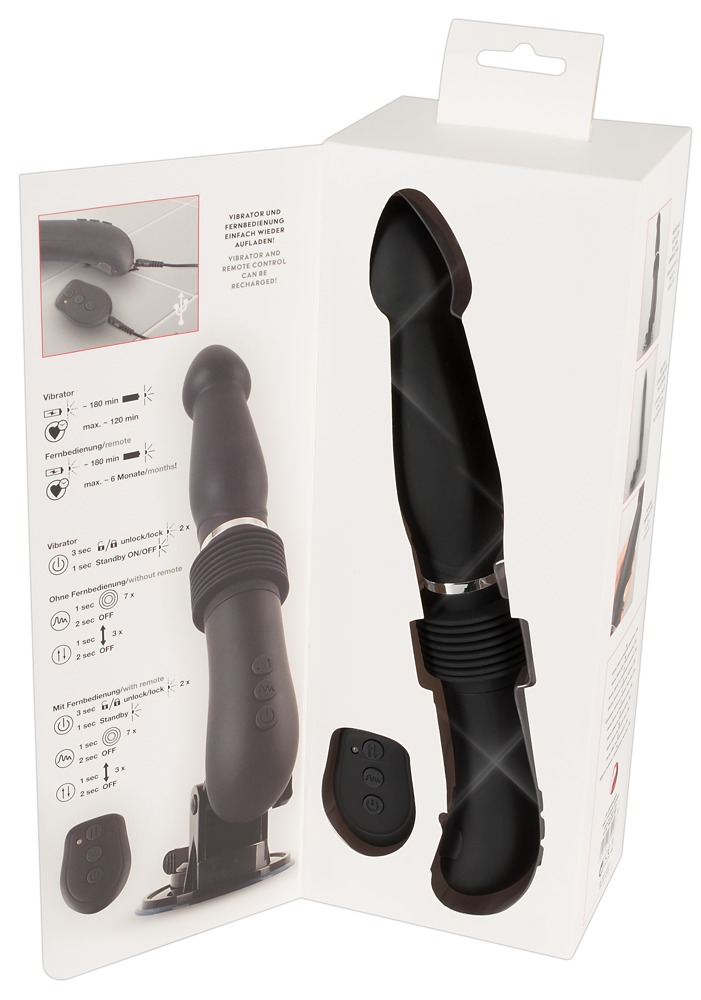 Ten wibrator przekonuje swoimi głębokimi wstrząsami do 6 cm w 3 regulowanych prędkościach. Nie tylko prędkość i głębokość stymulacji, oddzielnie sterowane są również 7 trybów wibracji, które sprawiają, że ten wibrator jest wszechstronny. Miękka powierzchnia i stymulujący kształt wślizgują się same w sobie i zapewniają intensywną penetrację. Zdejmowana i regulowana stopka ssąca, wraz z pilotem zdalnego sterowania, umożliwia korzystanie z urządzenia bez użycia rąk lub przekazywanie sterowania partnerowi. Dołączony pilot zdalnego sterowania jest, podobnie jak sam wibrator, ładowalny za pomocą dołączonego kabla USB do ładowania. Dodatkowo, zamek na klucz zapewnia dyskretną podróż.