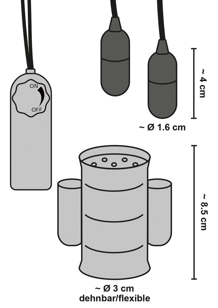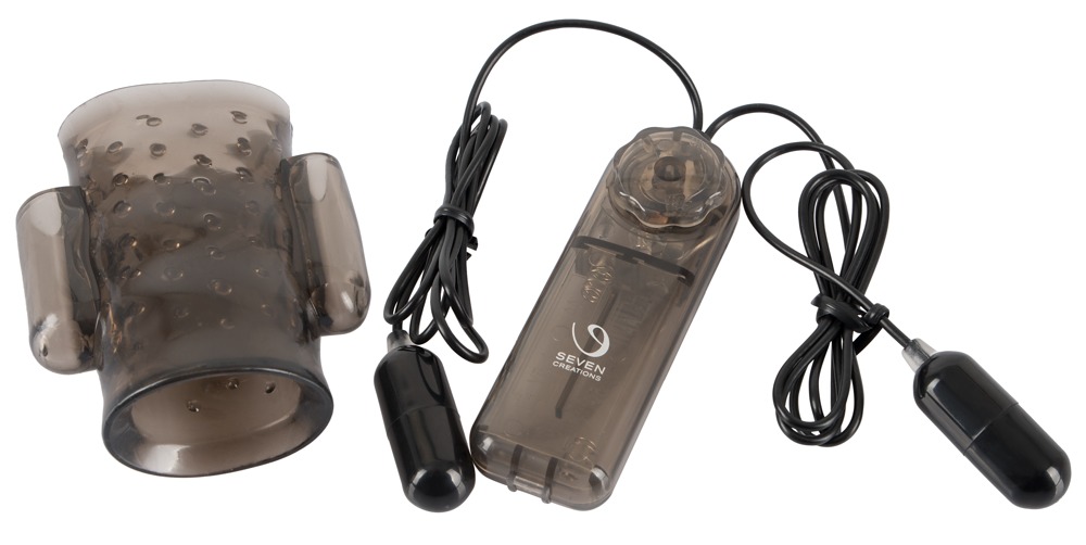 Wewnątrz tuleja z rowkami na zamknięte wibrobullety. Wibracje można regulować bezstopniowo za pomocą pilota. Baterie (2x AA) prosimy zamawiać oddzielnie.