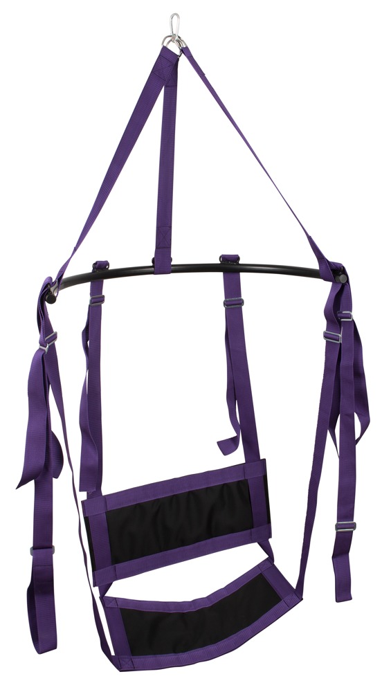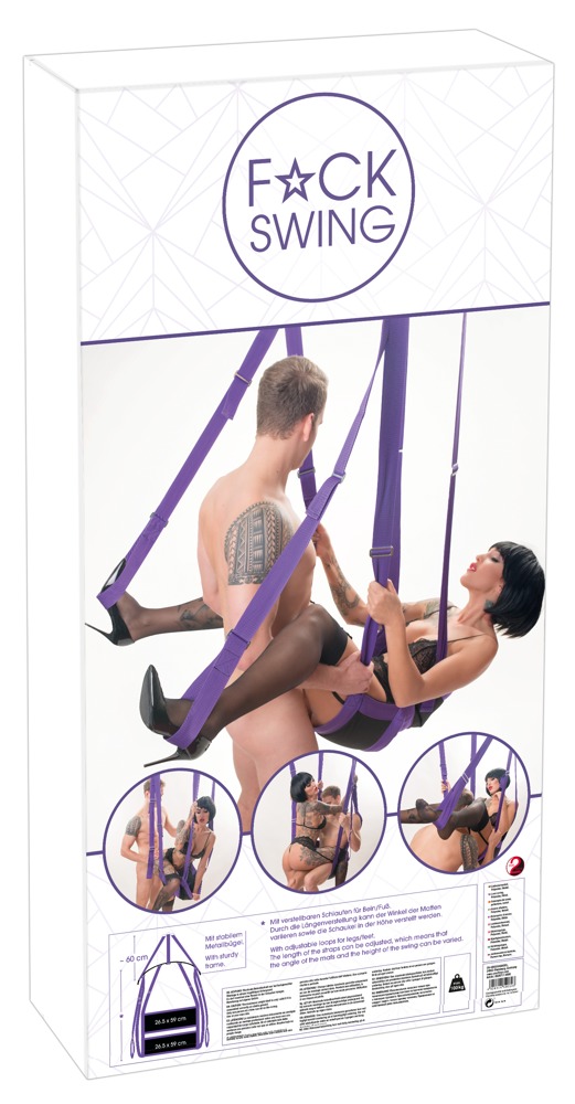 Pozycje, które są "technicznie" niemożliwe w łóżku stają się nową przyjemnością z tą huśtawką. Fioletowo-czarna huśtawka miłosna z łańcuszkiem do zawieszania, siedziskiem i oparciem o wymiarach 26,5 x 59 cm. Paski, szlufki na ręce i stopy wykonane z nylonu odpornego na rozerwanie, o regulowanej długości. Nośność do 100 kg. Bez akcesoriów montażowych.