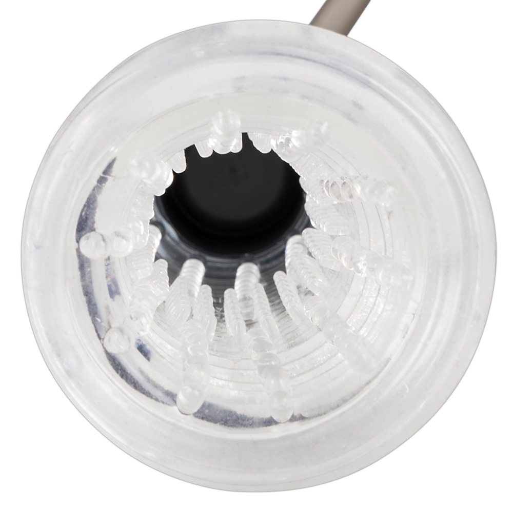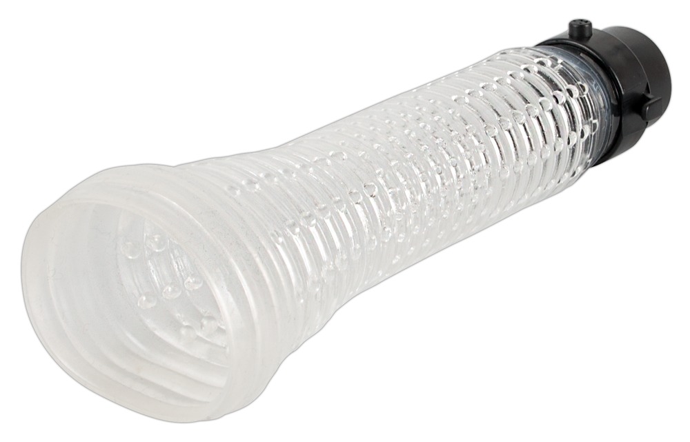 W zależności od tego, jak przymocujesz kulę pompy do węża (49 cm długości) butli, albo powietrze jest zasysane w celu stworzenia efektywnego podciśnienia dla treningu penisa/siły lub powietrze przepływa w celu uzyskania efektu rogowego zasysania, co jest równoważne z pracą ciosu. Dla dodatkowej stymulacji można również włączyć wibrację żołędzia, która jest płynnie regulowana od miękkiej do twardej. Długość całkowita 33,7 cm. Bębenek przezroczysty o głębokości 17,2 cm, na zewnątrz Ø 6 cm, wewnątrz z wyjmowaną tulejką nubbingową.